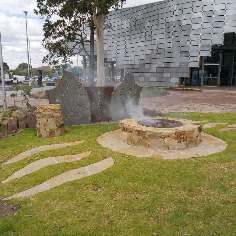 A ceremonial fire pit and symbolic sculpture in the heart of Springvale.
